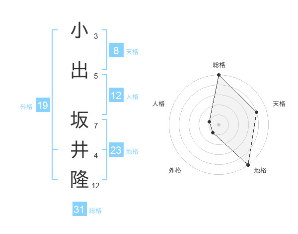 小出 坂井隆さんを姓名の画数から五運を鑑定