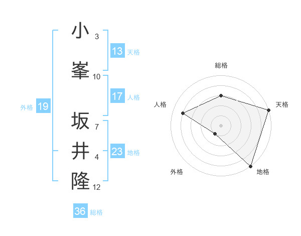 小峯 坂井隆さんを姓名の画数から五運を鑑定