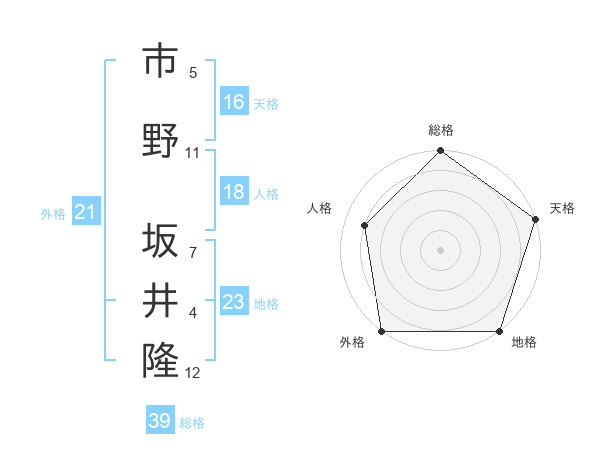 市野 坂井隆さんを姓名の画数から五運を鑑定