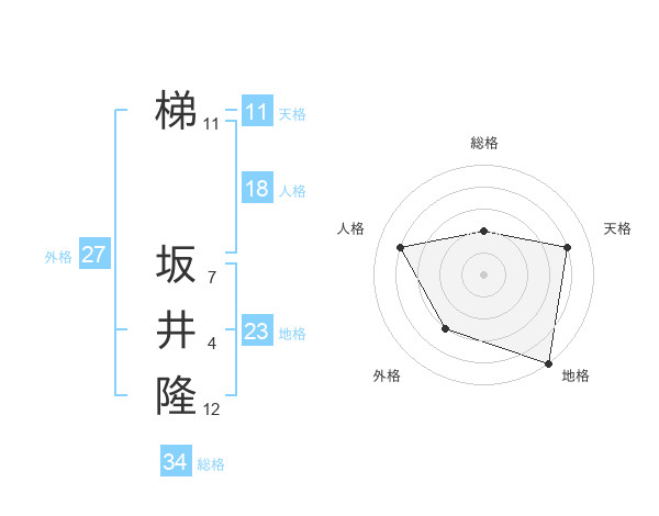 梯 坂井隆さんの総格は34画の2点!