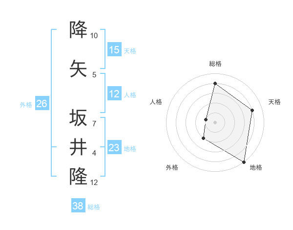 降矢 坂井隆さんを姓名の画数から五運を鑑定