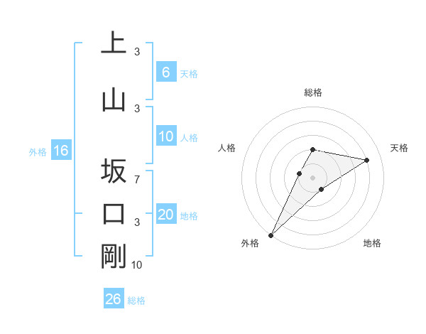 上山 坂口剛さんを姓名の画数から五運を鑑定