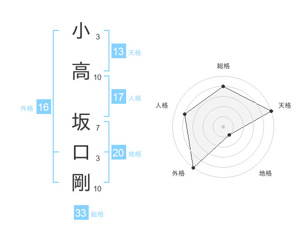 小高 坂口剛さんの総格は33画の4点!