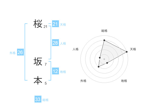 桜 坂本さんの天格は21画の5点!