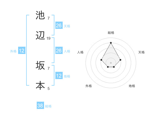 池辺 坂本さんの総格は38画の4点!