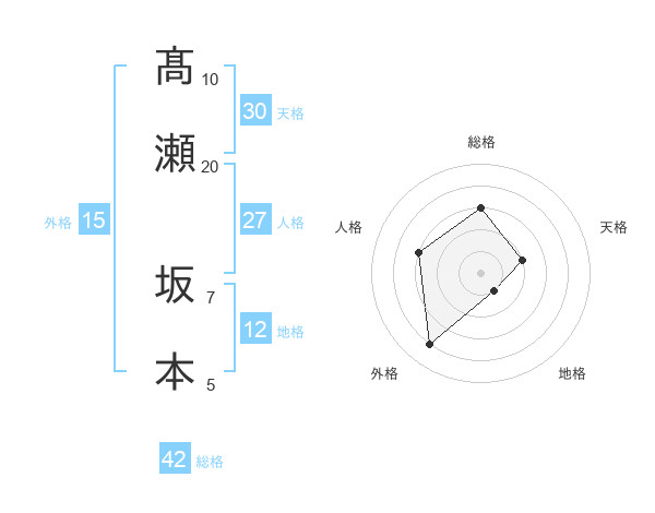 髙瀬 坂本さんを姓名の画数から五運を鑑定
