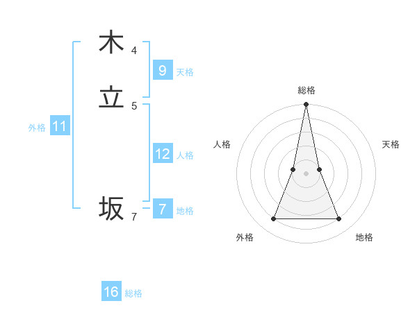 木立 坂さんの総格は16画の5点!