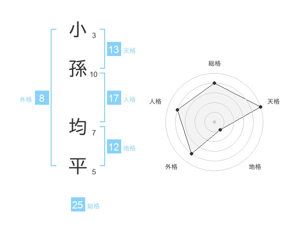 小孫 均平さんの天格は13画の5点!