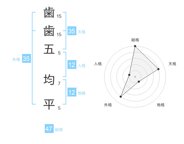 歯歯五 均平さんの総格は47画の5点!