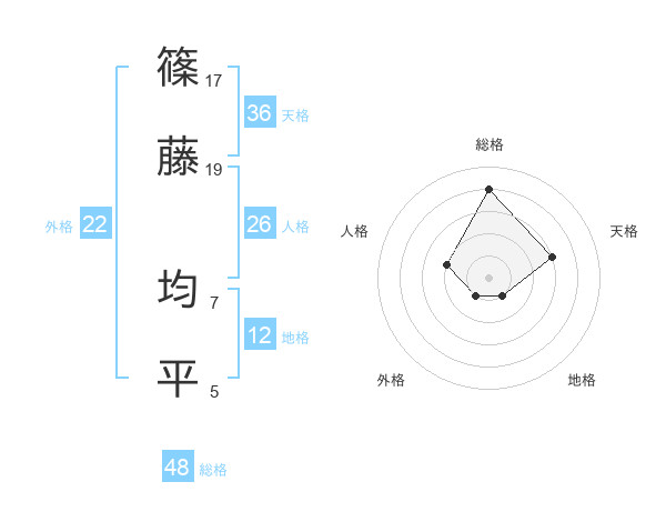 篠藤 均平さんの総格は48画の4点!