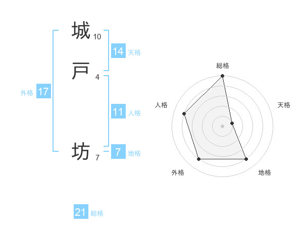 城戸 坊さんの総格は21画の5点!