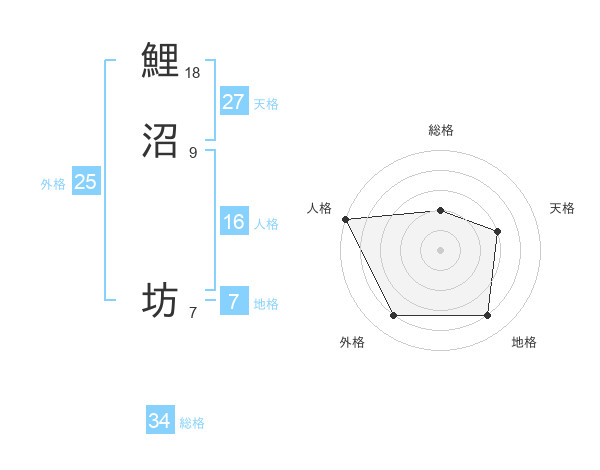鯉沼 坊さんを姓名の画数から五運を鑑定