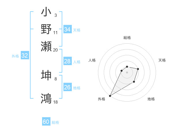 小野瀬 坤鴻さんの外格は32画の5点!