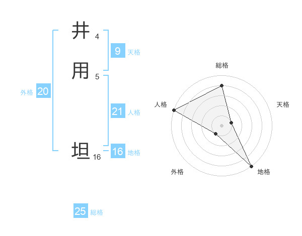 井用 坦さんの地格は16画の5点!