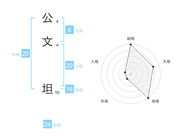 公文 坦さんの地格は16画の5点!