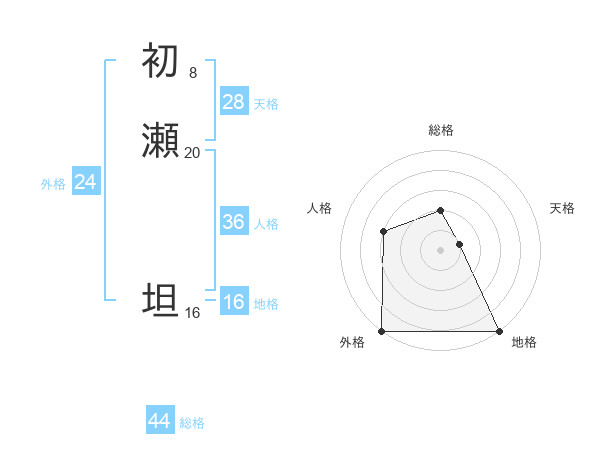 初瀬 坦さんの総格は44画の2点!