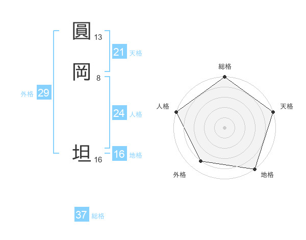 圓岡 坦さんを姓名の画数から五運を鑑定