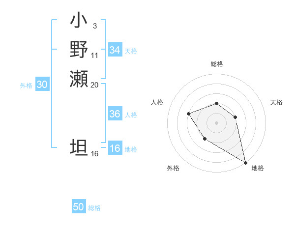 小野瀬 坦さんを姓名の画数から五運を鑑定