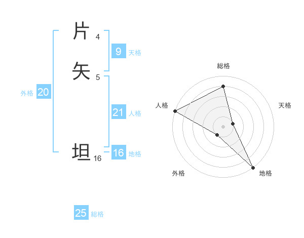 片矢 坦さんの総格は25画の4点!