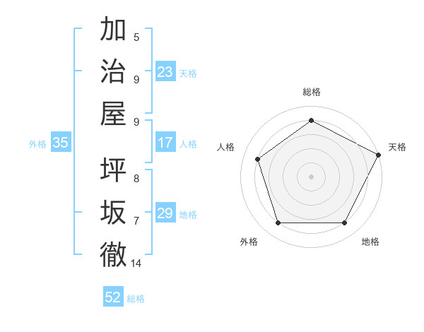 加治屋 坪坂徹さんの総格は52画の4点!