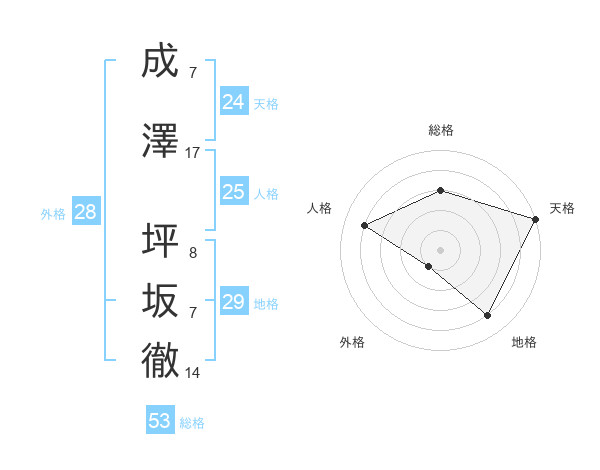 成澤 坪坂徹さんを姓名の画数から五運を鑑定