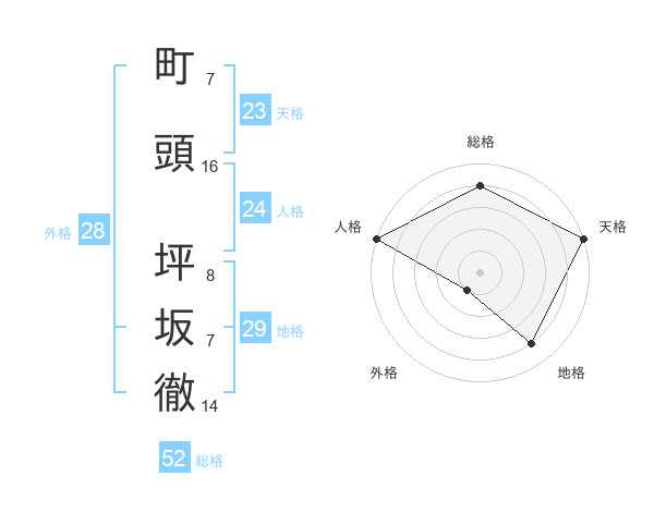 町頭 坪坂徹さんの総格は52画の4点!