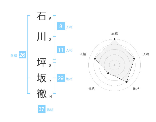 石川 坪坂徹さんの総格は37画の5点