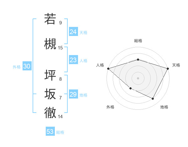 若槻 坪坂徹さんを姓名の画数から五運を鑑定