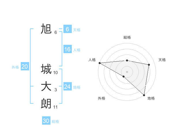 旭 城大朗さんを姓名の画数から五運を鑑定