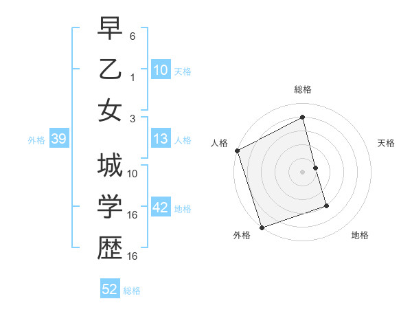 早乙女 城学歴さんの外格は39画の5点!