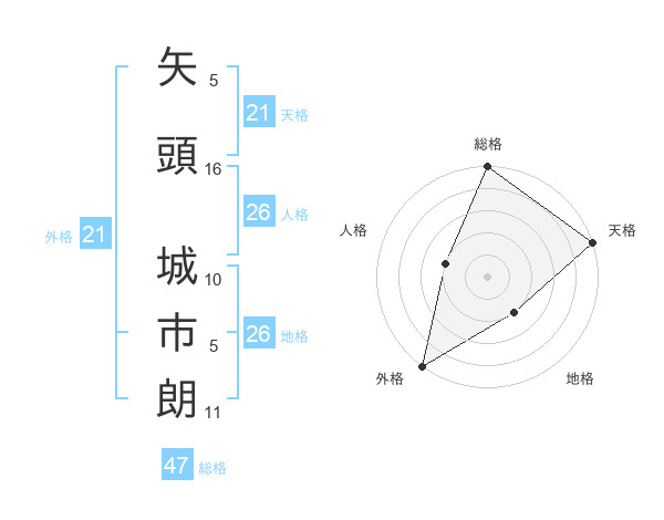矢頭 城市朗さんを姓名の画数から五運を鑑定