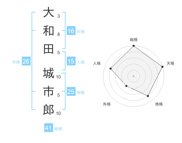 大和田 城市郎さんの総格は41画の5点!