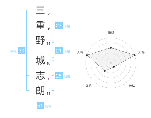 三重野 城志朗さんを姓名の画数から五運を鑑定