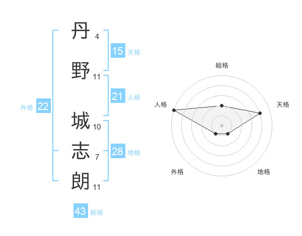 丹野 城志朗さんを姓名の画数から五運を鑑定