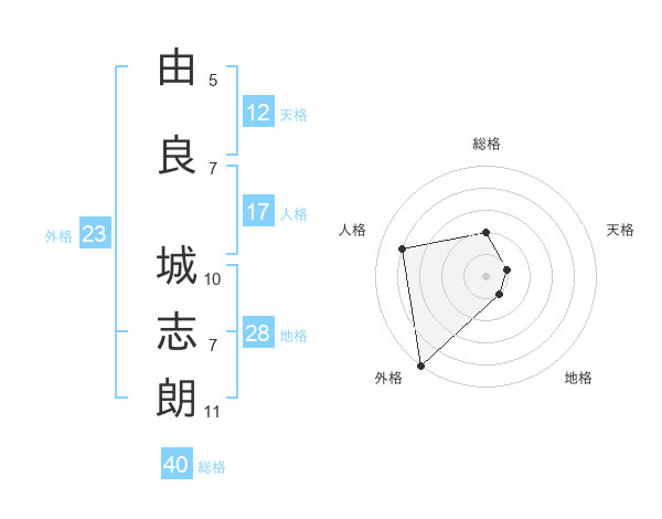 由良 城志朗さんの総格は40画の2点