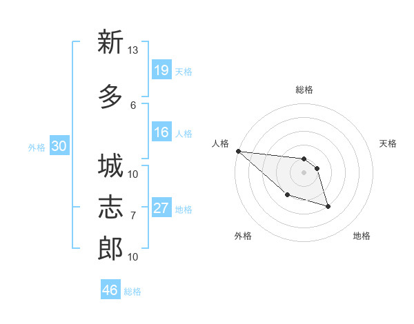 新多 城志郎さんを姓名の画数から五運を鑑定