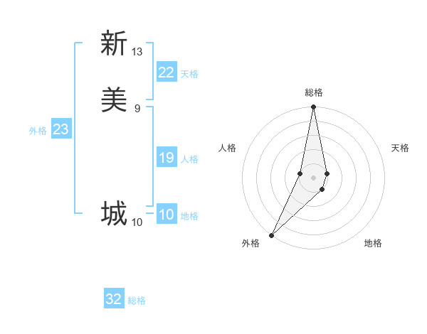 新美 城さんの総格は32画の5点!