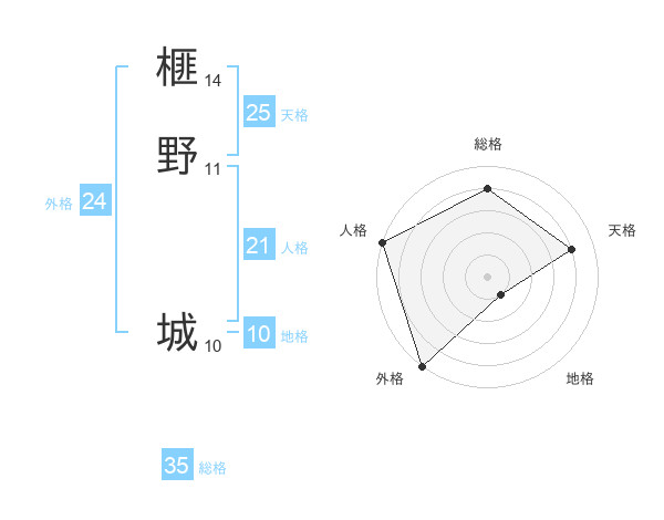 榧野 城さんの総格は35画の4点!