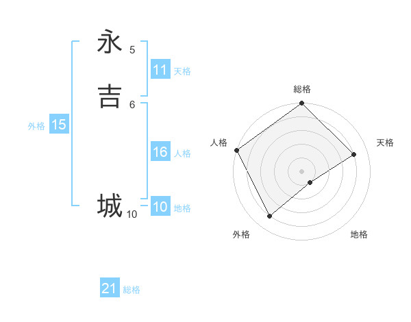 永吉 城さんの総格は21画の5点!