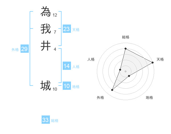 為我井 城さんの総格は33画の4点!