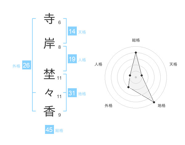 寺岸 埜々香さんの総格は45画の4点!