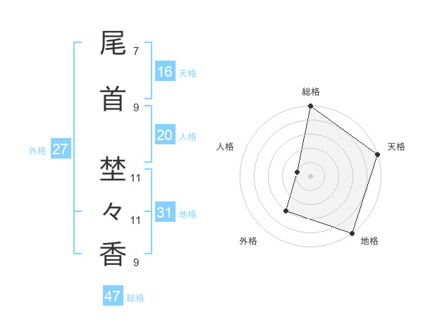 尾首 埜々香さんを姓名の画数から五運を鑑定