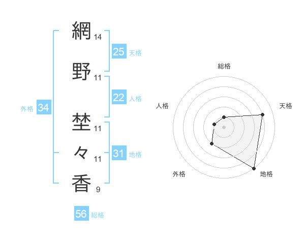 網野 埜々香さんを姓名の画数から五運を鑑定