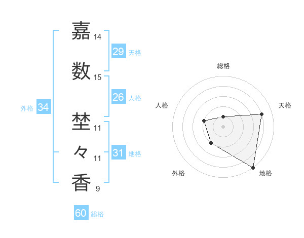 嘉数 埜々香さんの総格は60画の1点!