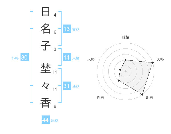 日名子 埜々香さんを姓名の画数から五運を鑑定
