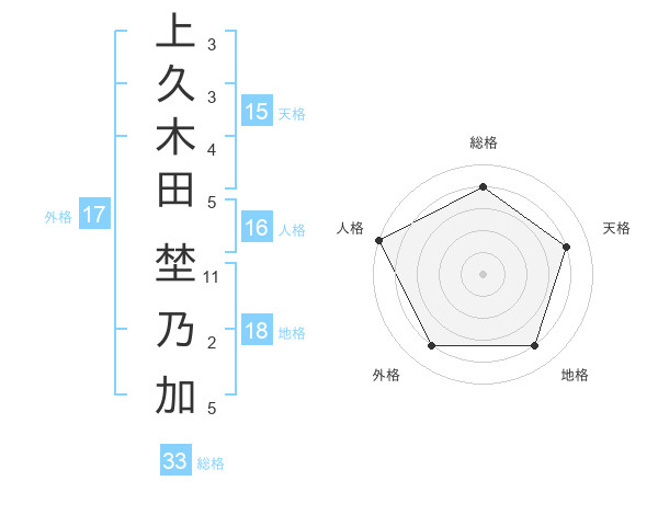 上久木田 埜乃加さんを姓名の画数から五運を鑑定