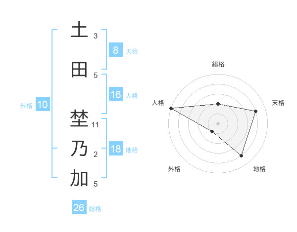 土田 埜乃加さんを姓名の画数から五運を鑑定