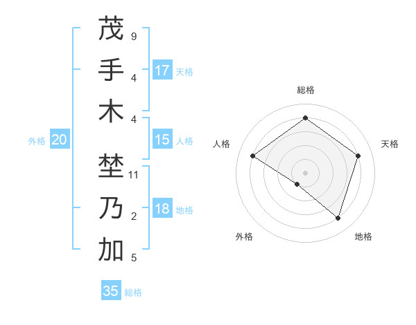 茂手木 埜乃加さんの総格は35画の4点!