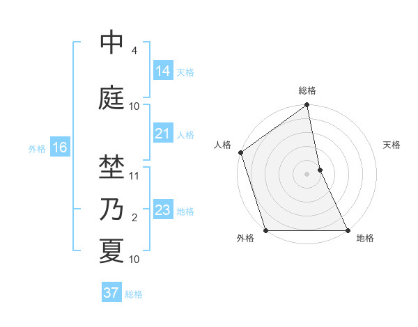 中庭 埜乃夏さんを姓名の画数から五運を鑑定