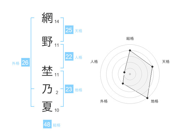網野 埜乃夏さんを姓名の画数から五運を鑑定